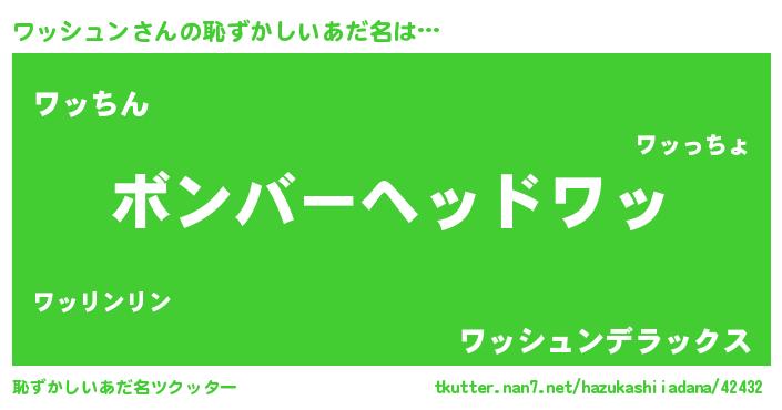 | 男性向けラノベタイトル風あだ名 | 『緋弾のワッシュン』 |