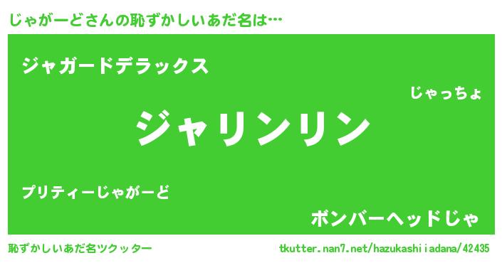 | 欧米人風あだ名 | 『アンジェラ・じゃがーど』 |