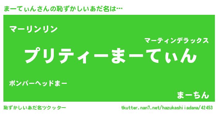 | 意味不明あだ名 | 『住所不定無職まーてぃん(11歳)』 |