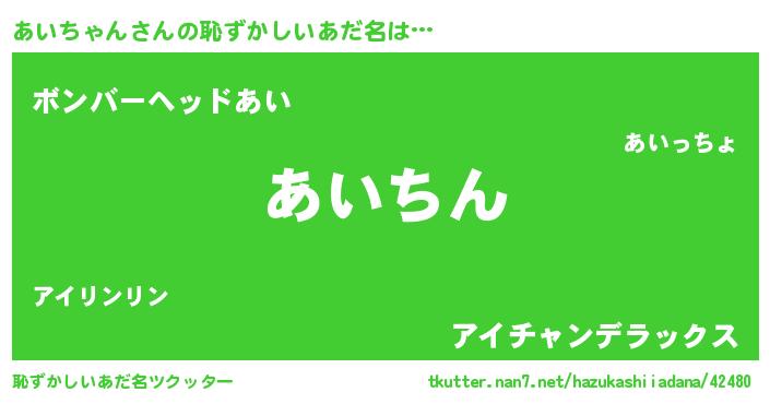 | 意味不明あだ名 | 『永久保存あいちゃん』『自称あいちゃん』 |