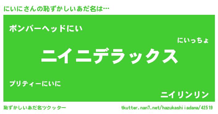 | 意味不明あだ名 | 『自称にいに』『眠気覚ましガムにいに味』 |