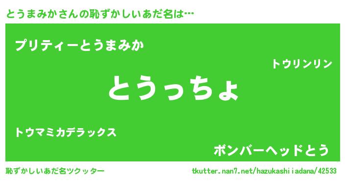 | 意味不明あだ名 | 『とうまみかフォーエバー』 |
