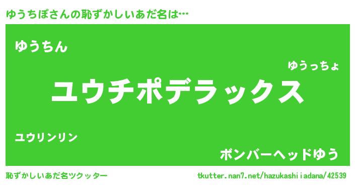 | 意味不明あだ名 | 『自称ゆうちぽ』『永久保存ゆうちぽ』 |