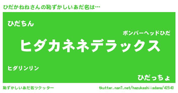 | ヒーロー風カッコイイあだ名 | 『超時空戦士ヒダカネネ』『仮面ヒダダー』 |