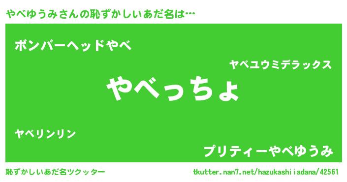 | 意味不明あだ名 | 『やべゆうみフォーエバー』 |