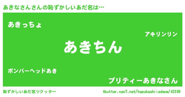 | 意味不明あだ名 | 『永久保存あきなさん』 |