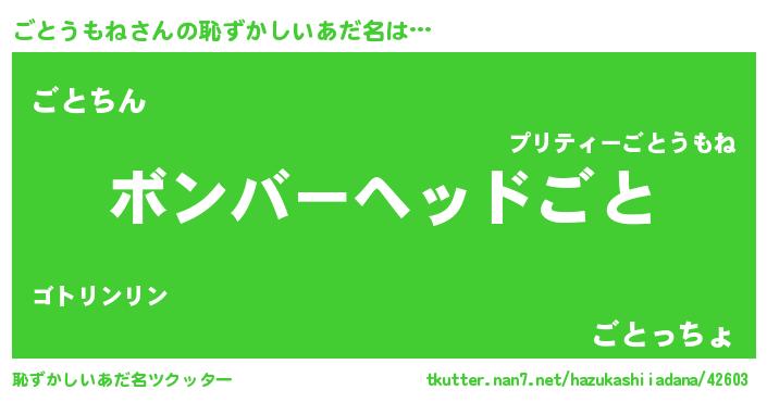 | ヒーロー風カッコイイあだ名 | 『正義の使者ごとうもね』『仮面ゴトダー』 |