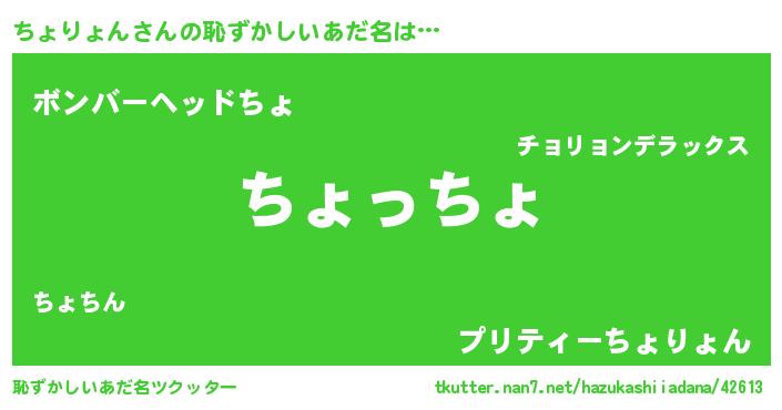 | 意味不明あだ名 | 『ちょりょんフォーエバー』 |