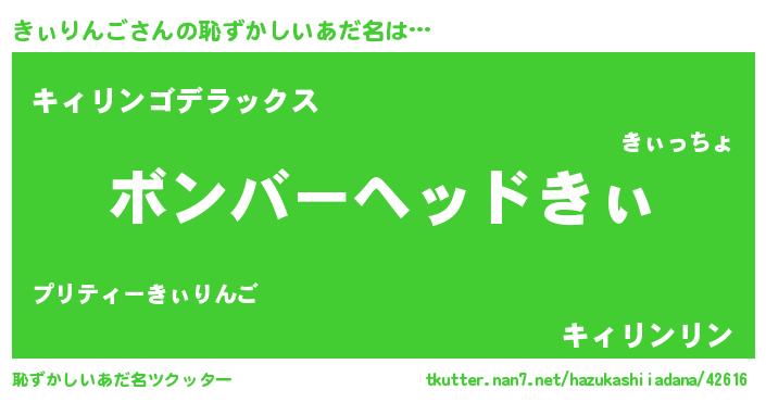| ヒーロー風カッコイイあだ名 | 『正義の使者きぃりんご』『天弓騎士キィ』 |