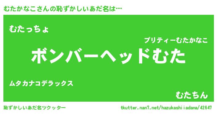 | ヒーロー風カッコイイあだ名 | 『仮面ムタダー』『慈愛の使者むたかなこ』 |
