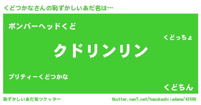| 意味不明あだ名 | 『住所不定無職くどつかな(12歳)』 |