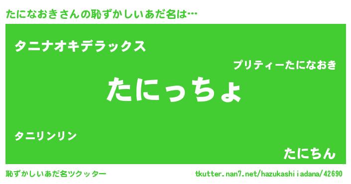 | ヘコむあだ名 | 『酢こんぶ』『たになおき(苦笑)』 |