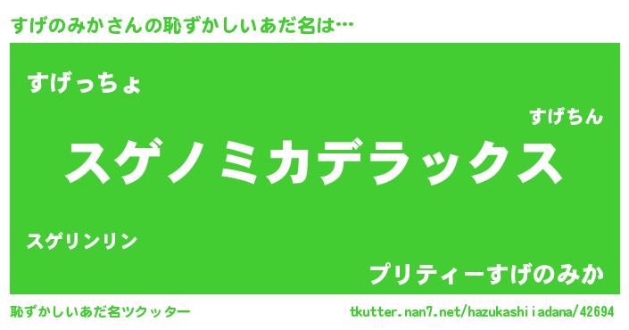 | 意味不明あだ名 | 『自称すげのみか』『ペロリンすげのみか』 |