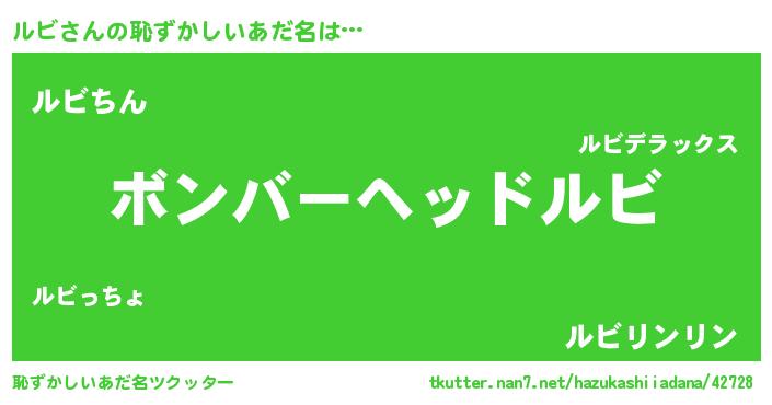 | ヘコむあだ名 | 『ルビ(遠い目)』『ルビ太郎』 |