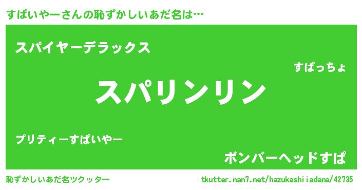 | ヒーロー風カッコイイあだ名 | 『炎刃騎士スパ』『最強戦士スパイヤー』 |
