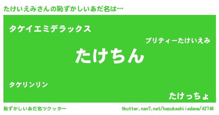 | 意味不明あだ名 | 『永久保存たけいえみ』『自称たけいえみ』 |