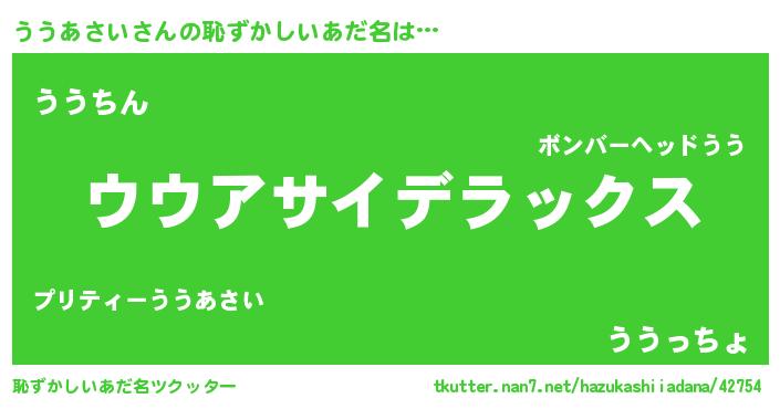 | ヘコむあだ名 | 『ううあさい(爆)』『なまこ酢』 |