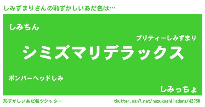 | ヒーロー風カッコイイあだ名 | 『仮面シミダー』『ネオシミズマリ』 |