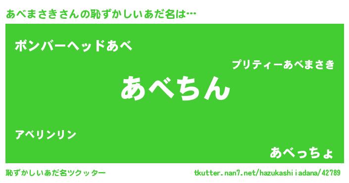 | 意味不明あだ名 | 『永久保存あべまさき』 |