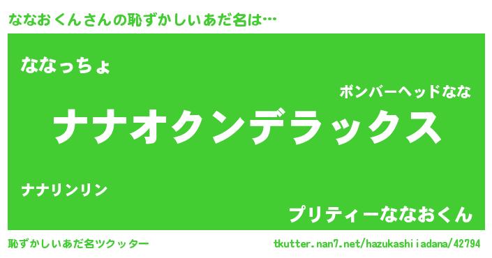 | ヒーロー風カッコイイあだ名 | 『究極戦士ナナオクン』『仮面ナナダー』 |