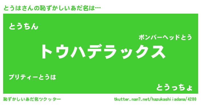 | ヘコむあだ名 | 『とうは(遠い目)』『なまこ酢』 |