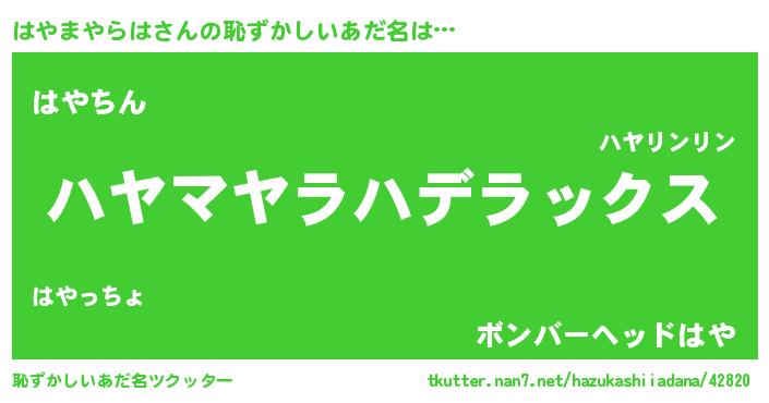 | ヘコむあだ名 | 『はやまやらは(笑)』『はやっぺ』 |