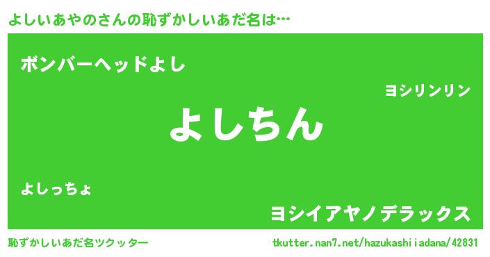 | ヘコむあだ名 | 『よしいあやの(遠い目)』『よしを』 |