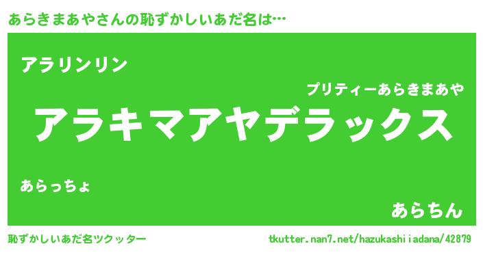 | ヘコむあだ名 | 『あらっちょ』『あらきまあや(笑)』 |