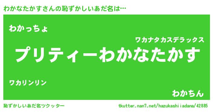| ヒーロー風カッコイイあだ名 | 『仮面ワカダー』『スーパーワカナタカス』 |