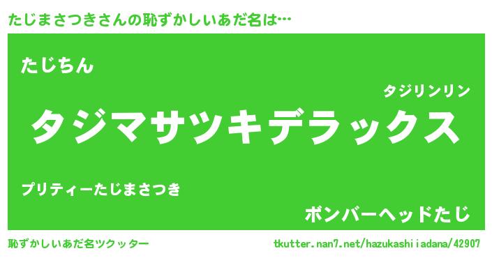 | ヘコむあだ名 | 『たじまさつき(笑)』『たじを』 |