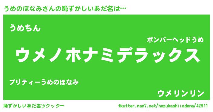 | ヘコむあだ名 | 『うめのほなみ(笑)』『うめお』 |
