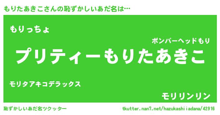 | 男性向けラノベタイトル風あだ名 | 『もりたあきこの憂鬱』 |