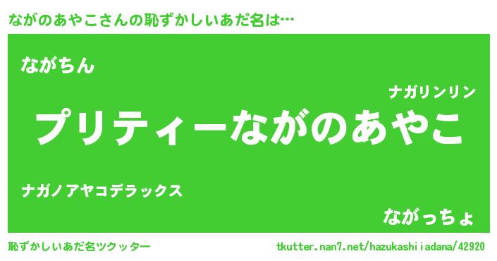 | 欧米人風あだ名 | 『ダレノガレながのあやこ』 |