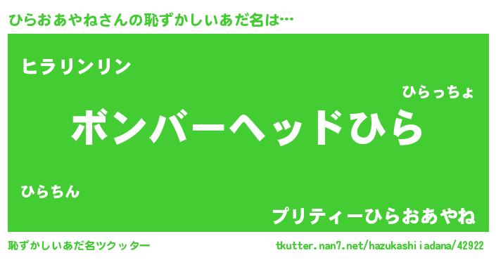 | 意味不明あだ名 | 『眠気覚ましガムひらおあやね味』 |