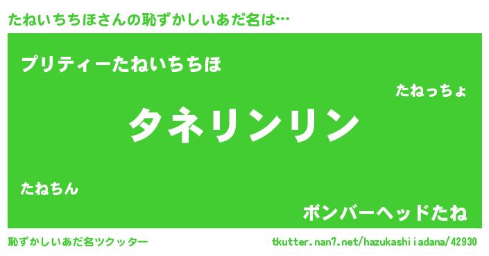 | 欧米人風あだ名 | 『ダレノガレたねいちちほ』 |