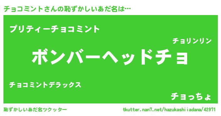| 意味不明あだ名 | 『住所不定無職チョコミント(10歳)』 |