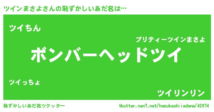 | ヘコむあだ名 | 『ツインまさよ(遠い目)』『ツイっちょ』 |