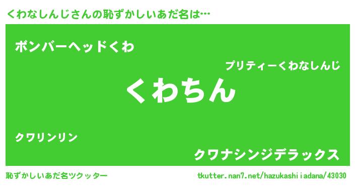 | ヘコむあだ名 | 『くわなしんじ(苦笑)』『くわっふぃ~』 |