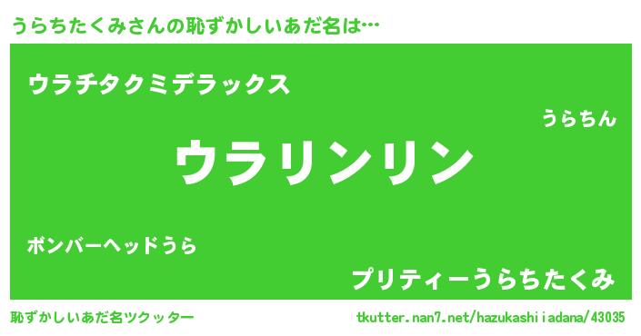 | 欧米人風あだ名 | 『ウサインうらちたくみ』 |