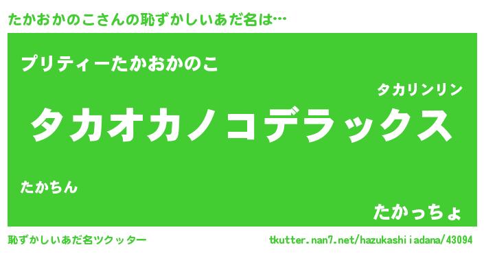 | 男性向けラノベタイトル風あだ名 | 『魔法科高校のたかおかのこ』 |
