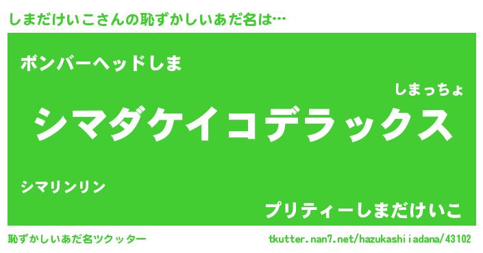 | ヒーロー風カッコイイあだ名 | 『仮面シマダー』『スーパーシマダケイコ』 |