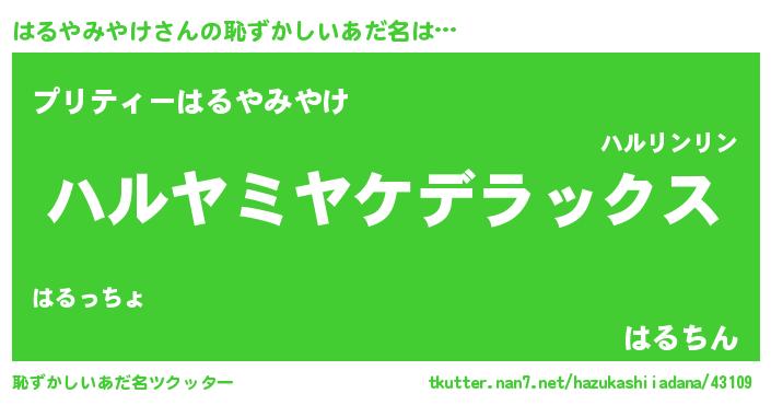 | 肩書あだ名 | 『はるやみやけ中将』『はるやみやけ閣下』 |