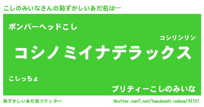 | ヒーロー風カッコイイあだ名 | 『最強戦士コシノミイナ』『仮面コシダー』 |