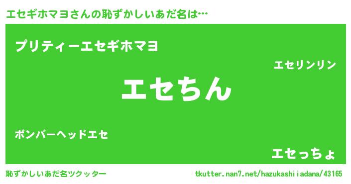 | 欧米人風あだ名 | 『ダレノガレエセギホマヨ』 |