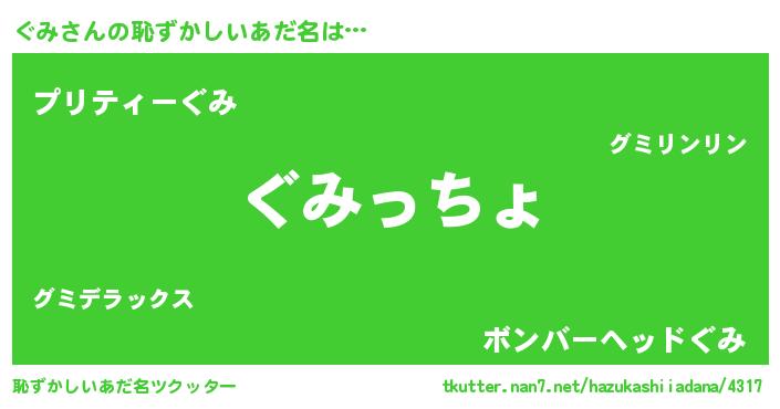 | ヘコむあだ名 | 『なまこ酢』『ぐみにー』『ぐみ(笑)』 |