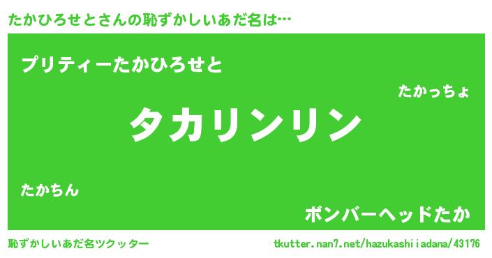| 意味不明あだ名 | 『とにかく怪しいたかひろせと』 |
