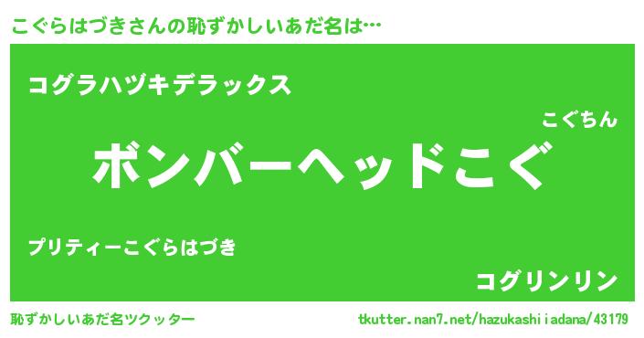 | 男性向けラノベタイトル風あだ名 | 『こぐらはづき~年齢イコール彼女いない歴の魔法使い~』 |