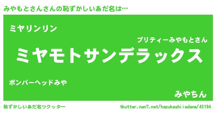 | ポケモン風あだ名 | 『ミヤセウス』『ヒミヤモトサン』 |