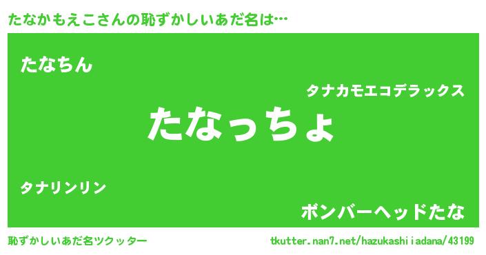 | ヘコむあだ名 | 『なまこ酢』『たなかもえこ(爆)』 |