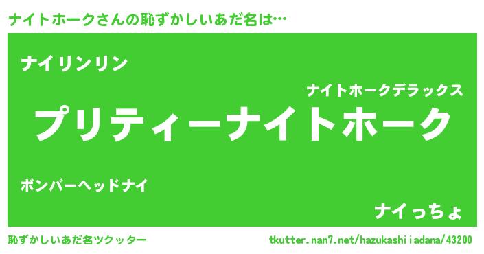 | 意味不明あだ名 | 『住所不定無職ナイトホーク(14歳)』 |